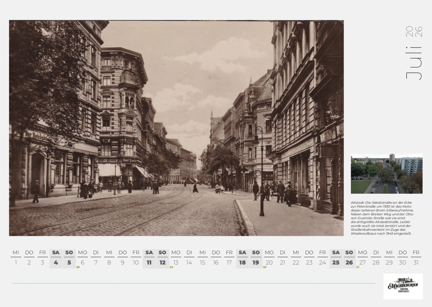 Der Kalender besticht durch seine ausgewogene Motivauswahl, wird doch nicht nur die Altstadt vor ihrer Zerstörung 1945 gezeigt, sondern auch eindrucksvolle Aufnahmen um 1900 aus Alte Neustadt, Sudenburg, Neue Neustadt und Buckau.